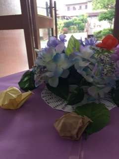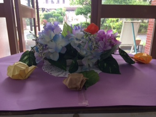 6月に入りました。学校の玄関では,カタツムリもかわいく子ども達を見守っています。