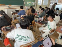 図工展を鑑賞し、気に入った作品をiPadで撮影していました。教室に戻って写真を使...