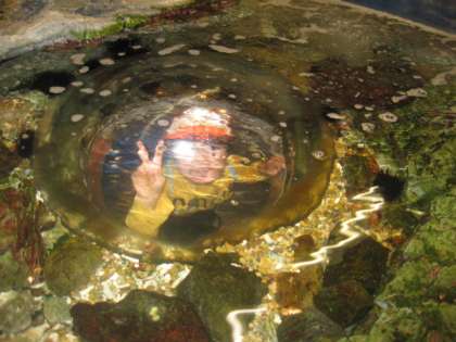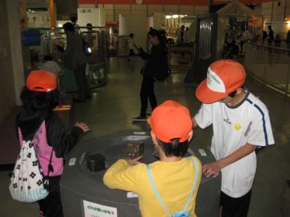 後半は,実験室での学習が終わった6年生と一緒に展示コーナーを回りました。