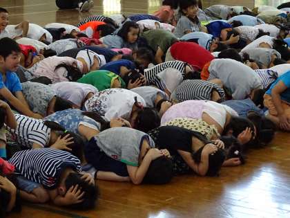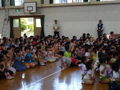 子どもたちにお馴染みの曲の演奏をしてもらいました。また,災害発生時の身の守り方も教わりました。