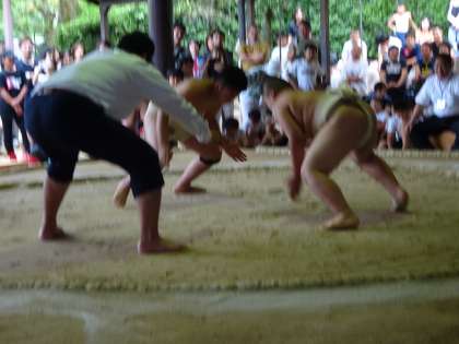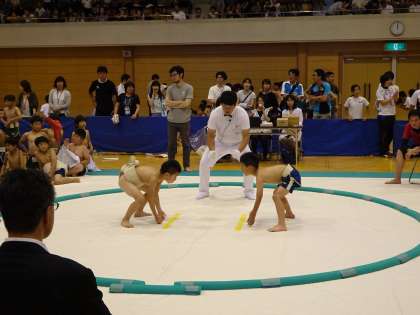 予選は体育館にてマット土俵で,午後からは土俵で対戦が行われました。