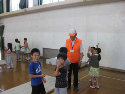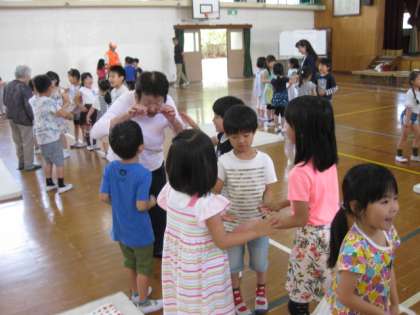 社会福祉協議会の方々と,昔の遊びを一緒に楽しみました。歌と動作だけですが,テレビゲームにない楽しさがあります。