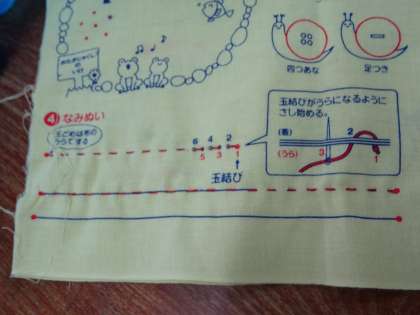 練習布を使って,なみぬいの練習をしていきました。線に沿って丁寧に塗っていきました。