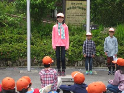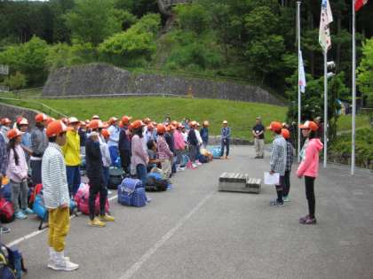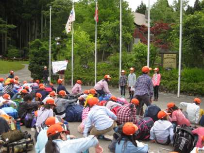 まず、最初の活動は入所式です。しっかりとした司会進行で、入所の言葉もとても立派に言えました。用意した校歌のCDが、山の家のCDとあわなかったので、急に伴奏なしで歌いましたが、しっかりときれいな歌声で歌えたので、所員の方が感心しておられました。