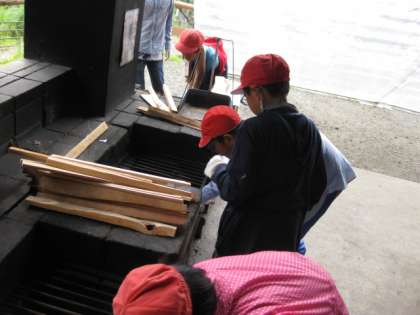いよいよ、調理開始です。かまどをの準備も同時に始めました。うまく火をつけてくださいね。