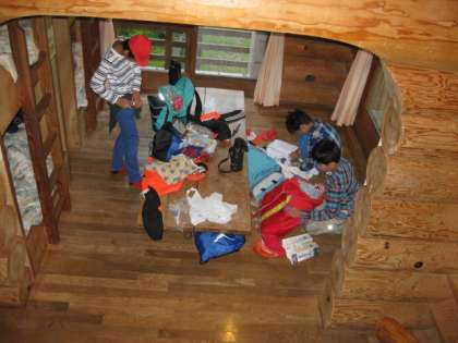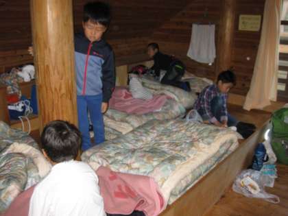 寝具をたたんで、荷物整理です。友達と協力し合いながら頑張っていました。