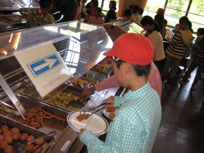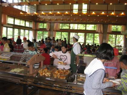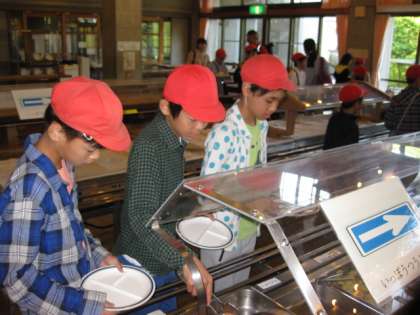 待ちに待った、バイキング形式の朝食です。思っていたより、偏りなくおかずを選んでいる子が多かったように思います。