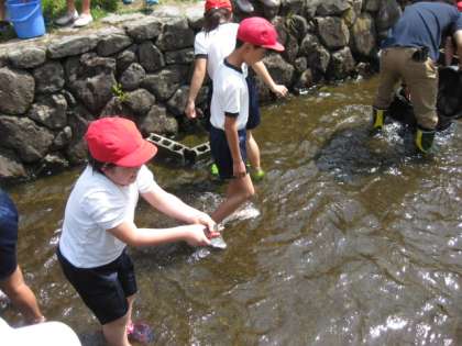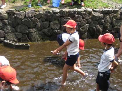 初めのうちは、魚をつかむのを怖がっていた子もいますが、だんだん大胆になってきました。同じグループの子が捕まえると、思わず拍手がわきおこります。