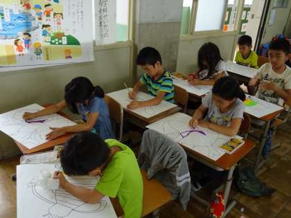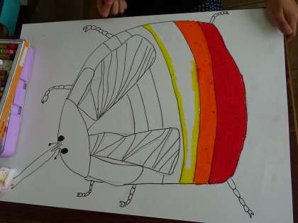自分が描いたカブトムシを色鮮やかに着色していきました。