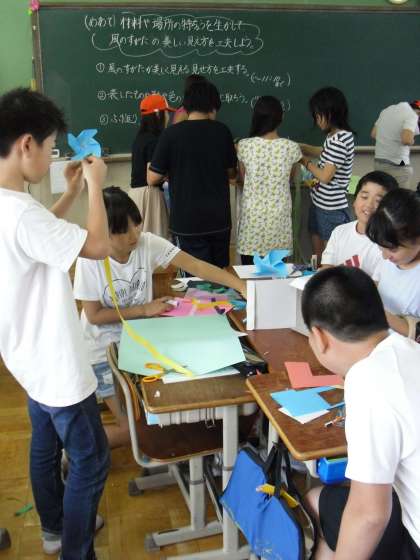 どうやったら風をうけて回るか,飛ぶかなどを考え,作っては試し,また作り直し…と,夢中になって制作していました。