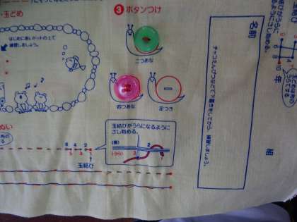 練習布にボタンを付けていきました。