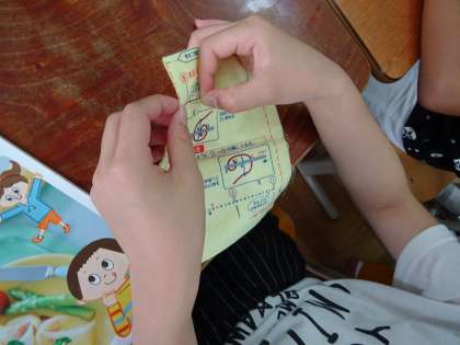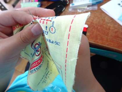 本返しぬいに挑戦しました。布を裏返しにしたり糸の間隔を考えたりして,学習を進めました。
