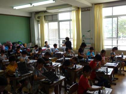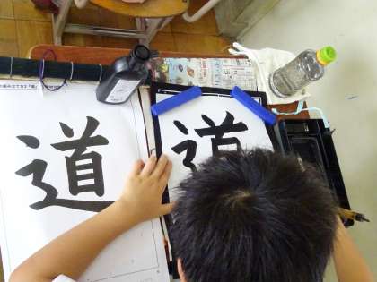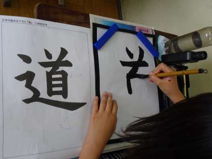 5年生は書写の学習で「道」を書きました。しんにょうはとても難しいですが,お手本をよく見て丁寧に書けていました。