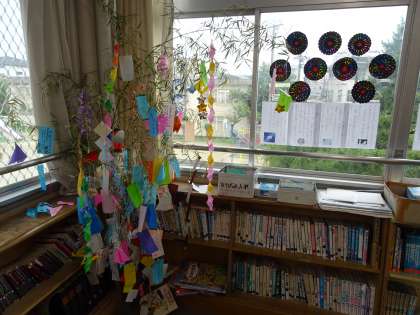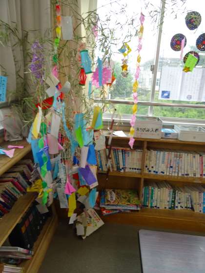 放課後まなび教室の児童が作った七夕の飾りが部屋に置かれていました。