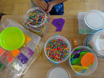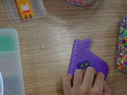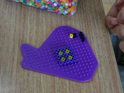 手や指の運動の様子です。中には,ビーズを組み合わせて,自分なりのデザインを考えて組み合わせる子どももいました。