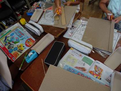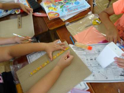 ドリームカーを作っています。ボール紙を使って,車体づくりをしました。