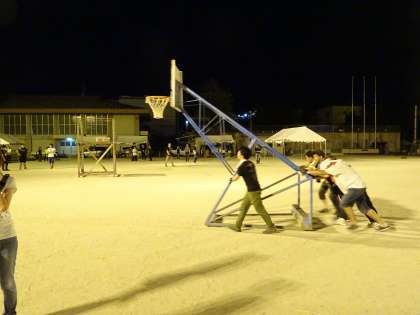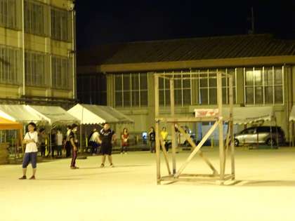 夕方から多くの地域の方が集合され,テントや櫓を次々と準備していかれました。