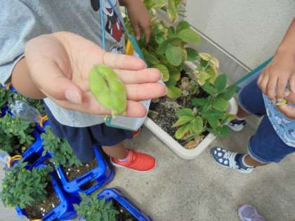4月からいくつかのグループに分かれて育てていた野菜が続々と収穫の時期を迎えています。ナス,きゅうり,ピーマン,インゲン豆,オクラ,枝豆・・・どれも立派に育っています!