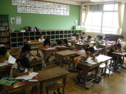 午前中に学習会がありました。夏休みにもかかわらずたくさんの子どもたちが集まり、学習をしました。