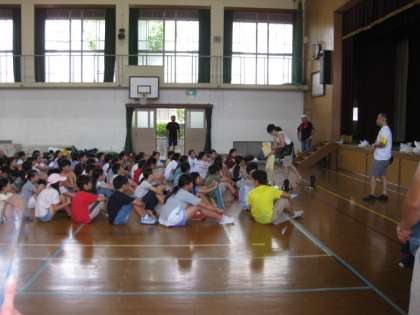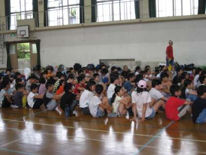 参加する子どもたちが,体育館に集合しました。さあ,いよいよ始まります。
