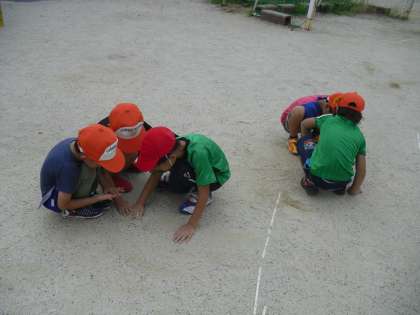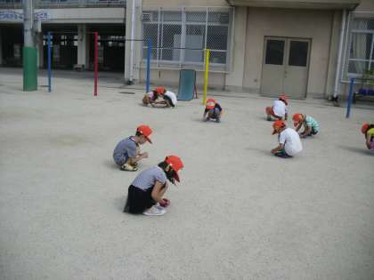 夏休みが明けて元気な顔がそろいました。朝会の後には,運動会に向けて石ひろいをしました。暑い中でしたがみんな一生懸命に石を集めていました。はじめての運動会楽しみですね。
