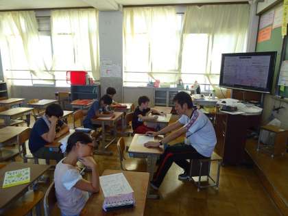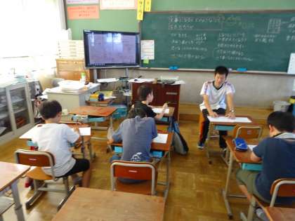放送係の活動の様子です。自分の役割や注意点について話し合いました。