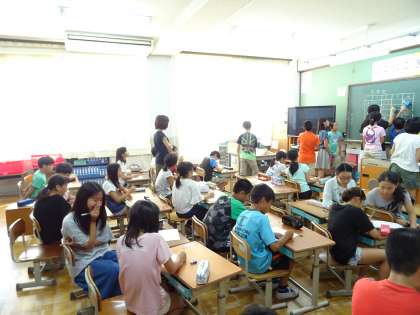決勝係の様子です。判定の仕方やカードについて話し合い,役割分担をしました。