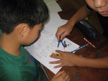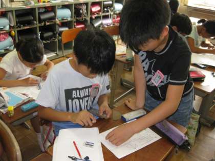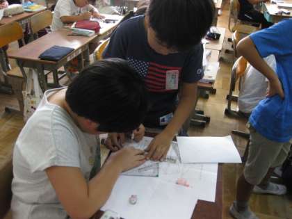 5年生は,全く同じ図形を書く練習をしています。6年生は,図形の縮小・拡大,5年生は合同な図形を書いたりすることに取り組んでいます。