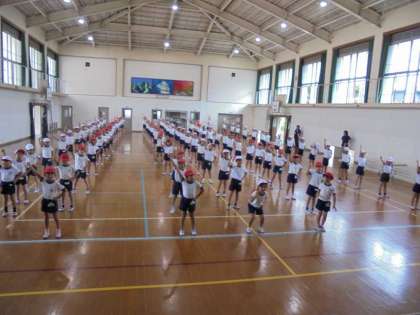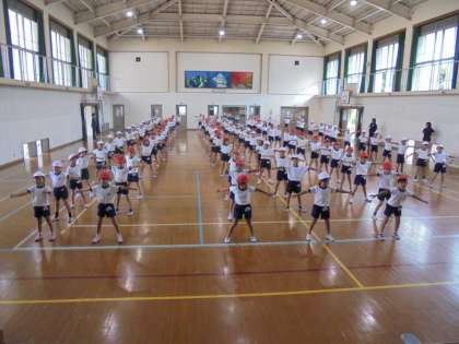 運動場での練習に引き続き,体育館では団体演技の練習をしました♪日に日に新しい振付けを覚えることができています。運動会当日に笑顔で明るく踊れるように2年生全員でがんばっていきます!