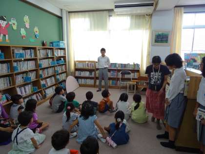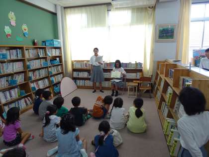 中学生達が,小学校低学年の子どもたちに分かりやすく読み聞かせをしてくれていました。放送部で日頃,様々な原稿を読んだり朗読をしたりしているので,とても聞きやすかったです。