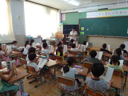 「うみの かくれんぼ」を音読していました。正しい姿勢で読めていました。