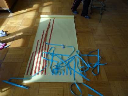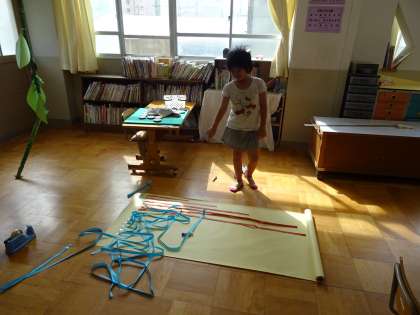 ひまわりの成長記録をテープで表にして模造紙に表しました。