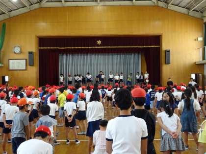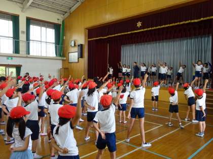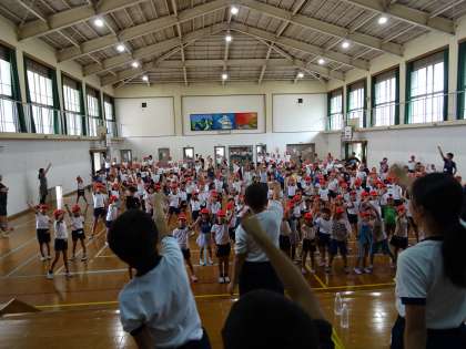 赤組の応援練習の様子です。運動会当日に向けて,みんなで頑張りました。