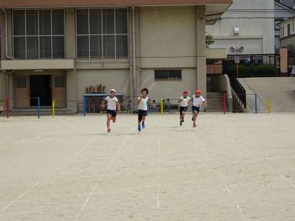 100m走の様子です。さすが高学年です。コーナーを滑らかに回れていました。