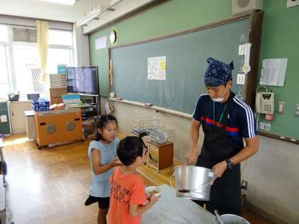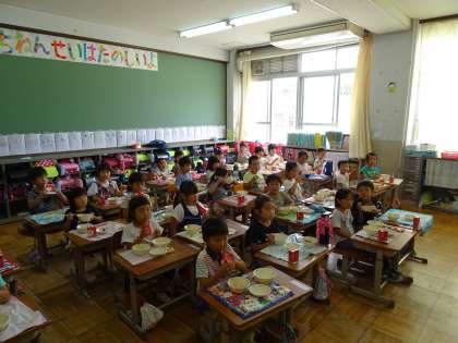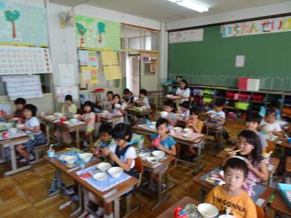 給食時間の様子です。子どもたちは給食を美味しくいただいていました。