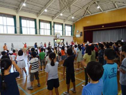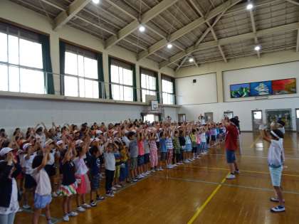 前回と入れ替わり,白組が体育館で応援練習をしました。