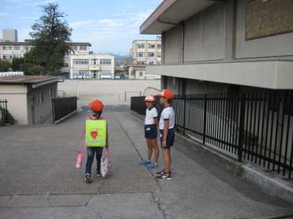 毎週木曜日に実施しているあいさつ運動の様子です。前期の各クラス代表の子どもたちが取り組んで来ました。前期もあと少しですので,頑張ってください。
