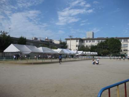 運動会の準備 テント設営できました