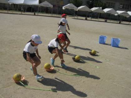 台風の目の練習が終わった後,今度は障害物競走の練習です。最後の引っぱってが難しそうですね。