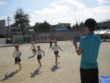 担任の先生が,タブレットの動画機能を使って,跳び越し方や走り方を撮っていましたた。練習が終わった後,教室で振り返りに使うのでしょうか?