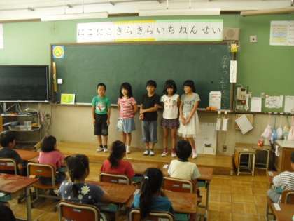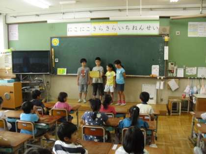 学習したことを1年2組で発表会を行いました。(3年2組の発表)