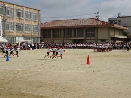 3年生の団体競技台風の目です。決意を述べた後,競技開始です。