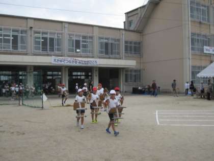 こんな状況ですが,あわてずゆっくり確実に準備をし始めました。運動場の水たまりの修復やライン引きや本部テント・敬老席の設置は,6時頃より教職員で準備し,何とか子どもたちの登校までに間に合いました。