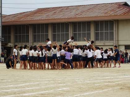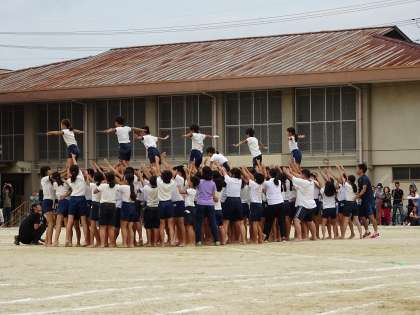 大技「人間起こし」です。お互いを信じて,演技を行います。