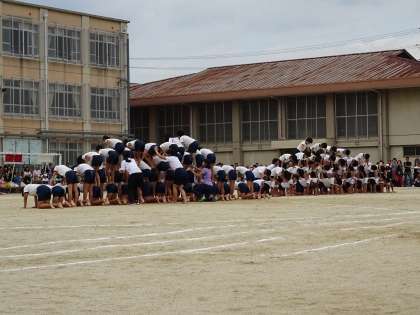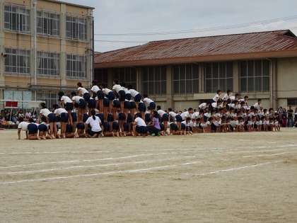 みんなでピラミッドをつくりました。