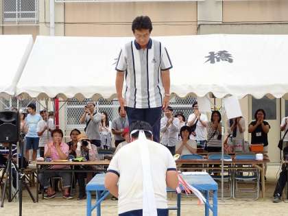 続いて,応援団に校長先生より表彰状が手渡されました。