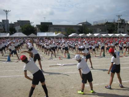 全校ダンスです。全体で練習する機会が少なかったのですが,みんな楽しく踊ることができました。