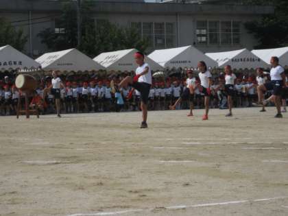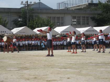 エール交換が始まりました。お互いに相手の健闘を祈って,しっかりとエール交換ができました。赤組の様子です。