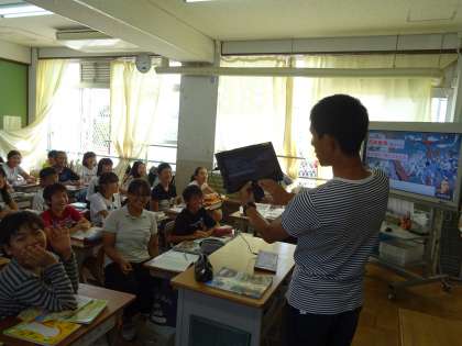 タブレット端末のワイヤレス機能を使っていますので,TVから離れて操作をしたり,画面上に説明を書き込んだりできます。とても便利です。