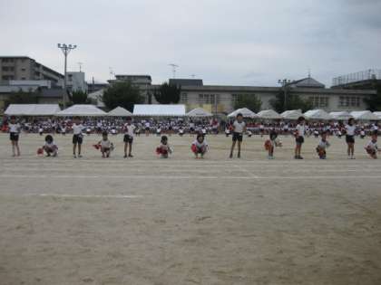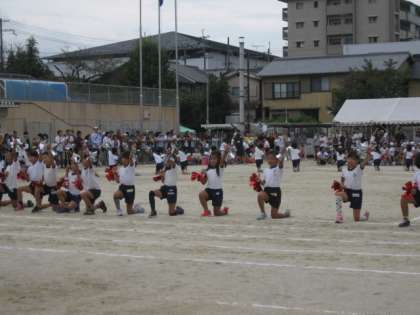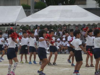 運動会では,団体演技が花をそえます。トップをきって2年生が可愛らしい中にも,練習の成果を見せたダンスを披露してくれました。